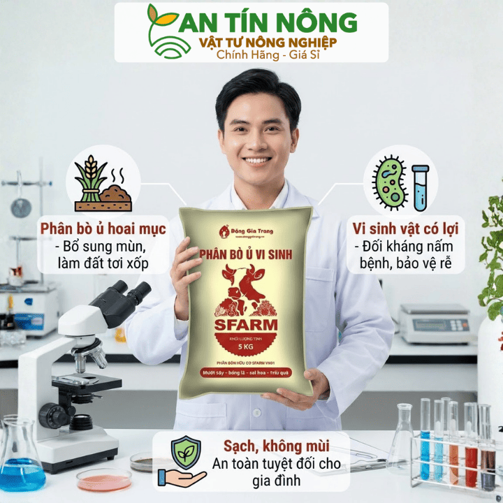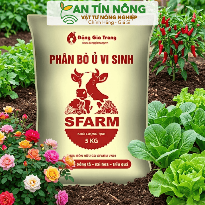 Phân bò vi sinh SFARM (bao 2kg – 5kg) – Giải pháp cải tạo đất chai cứng, kích rễ cực mạnh. Hàng chính hãng tại An Tín Nông. Gọi ngay 0909.612.274 để được tư vấn miễn phí!