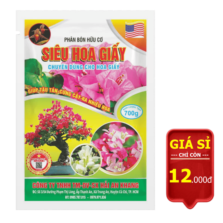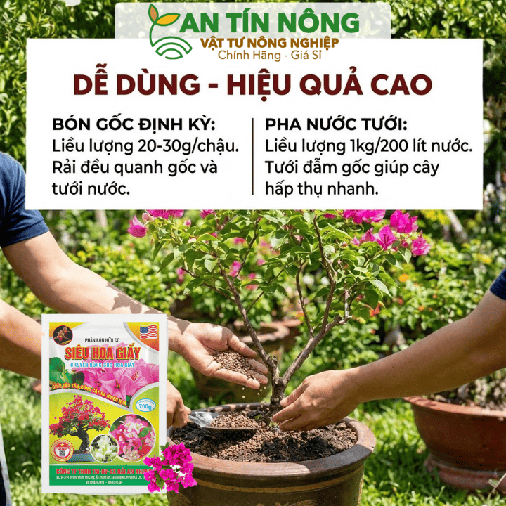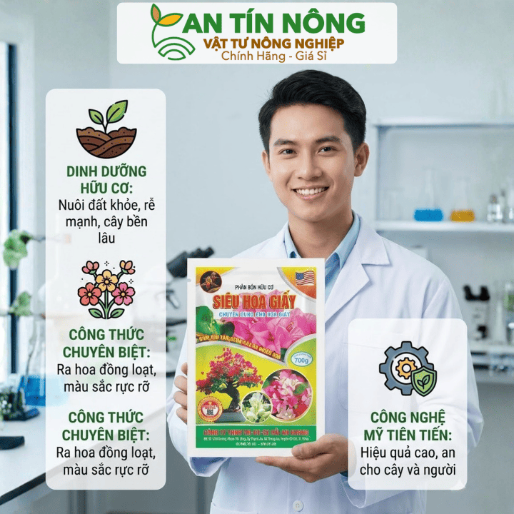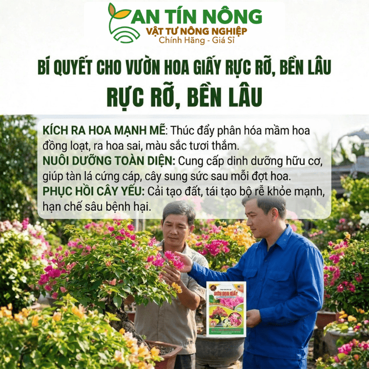 Phân bón Hoa Giấy Hữu Cơ giúp kích hoa nở rực rỡ, bền màu và lâu tàn. Giải pháp an toàn cho cây cảnh. Liên hệ 0909.612.274 để được kỹ sư tư vấn ngay!