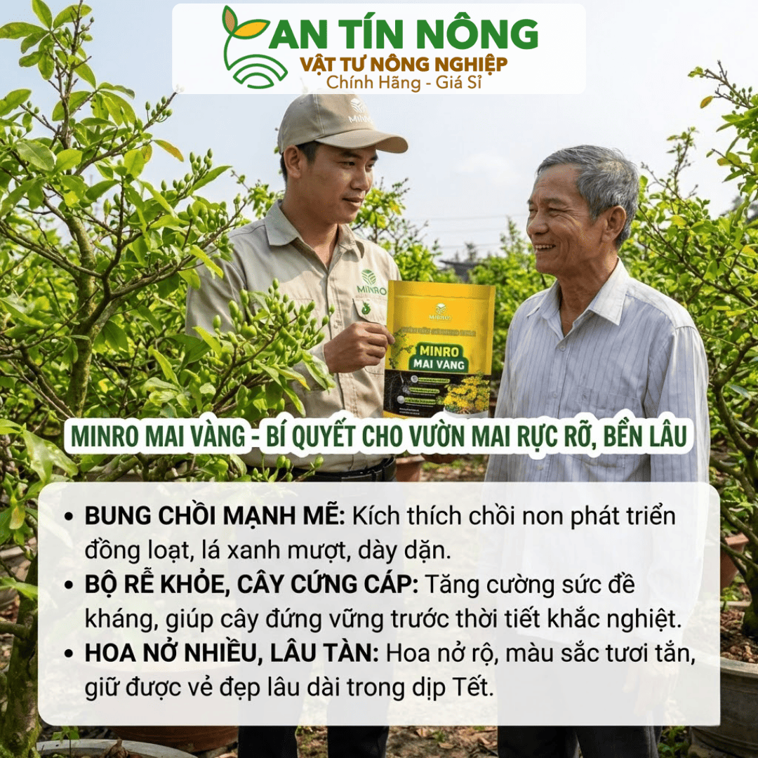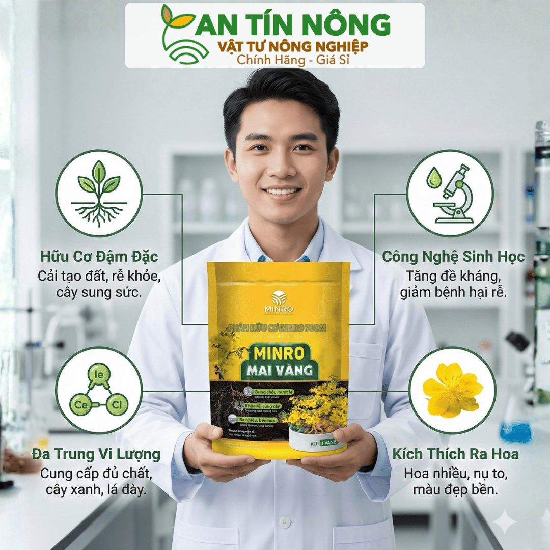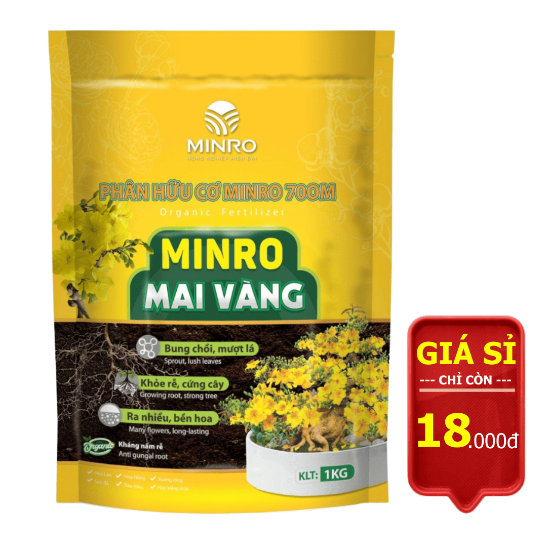 Phân bón Hoa Mai Minro (gói 1kg) chính là “cứu cánh” hoàn hảo. Đây là dòng phân bón hữu cơ đậm đặc, giúp cung cấp dinh dưỡng thiết yếu một cách an toàn và bền vững nhất cho cây trồng.