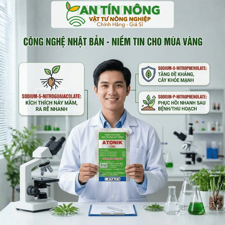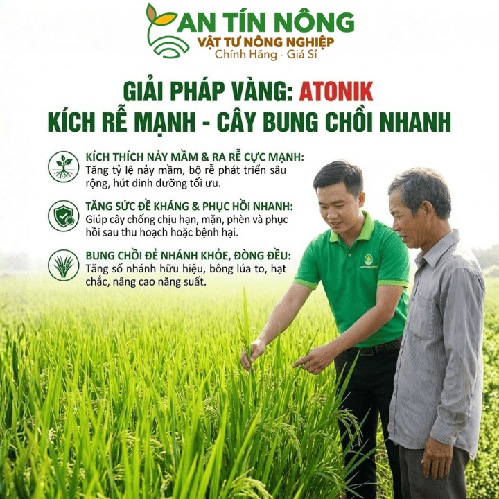 Atonik 1.8SL giúp kích rễ mạnh, bật chồi nhanh và tăng năng suất cây trồng vượt trội. Mua ngay tại An Tín Nông để được kỹ sư tư vấn miễn phí! Hotline: 0909.612.274.
