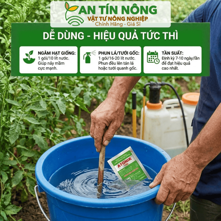 Có thể dùng Atonik để ngâm hạt giống không? Rất tốt! Ngâm hạt giống trong dung dịch Atonik pha loãng giúp mầm mọc mạnh và kháng bệnh từ đầu.