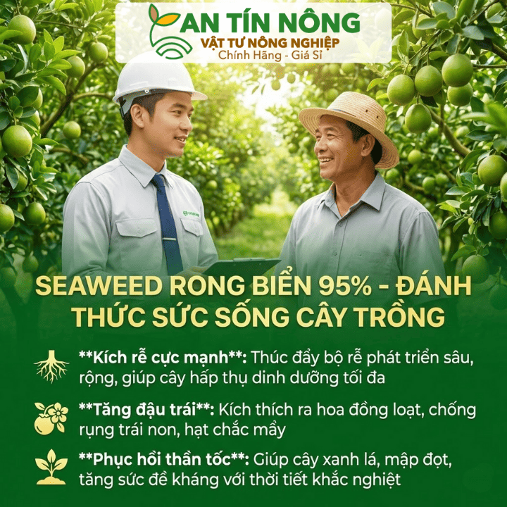 Bà con đang đau đầu vì vườn cây còi cọc, rễ kém phát triển, hay cây vừa trải qua đợt hạn mặn, sâu bệnh nên suy kiệt? Việc lạm dụng phân bón hóa học quá mức đôi khi khiến đất chai cứng, cây khó hấp thu dinh dưỡng. Đừng lo lắng, Phân bón lá Rong biển Seaweed chính là “cứu cánh” hữu cơ hoàn hảo. Với chiết xuất 100% từ rong biển thiên nhiên, sản phẩm không chỉ cung cấp dưỡng chất thiết yếu mà còn đóng vai trò như một chất điều hòa sinh trưởng, giúp cây “tỉnh giấc”, ra rễ mạnh và xanh lá tức thì. Hãy cùng An Tín Nông tìm hiểu bí quyết phục hồi cây xanh tốt bền vững ngay sau đây!