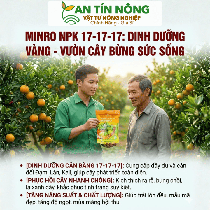 Đừng lo lắng, An Tín Nông mang đến cho bà con giải pháp tối ưu nhất: Phân bón NPK 17-17-17. Đây là dòng phân bón cao cấp với hàm lượng dinh dưỡng cân bằng “3 trong 1”, giúp cây trồng phát triển bứt phá từ rễ đến ngọn.