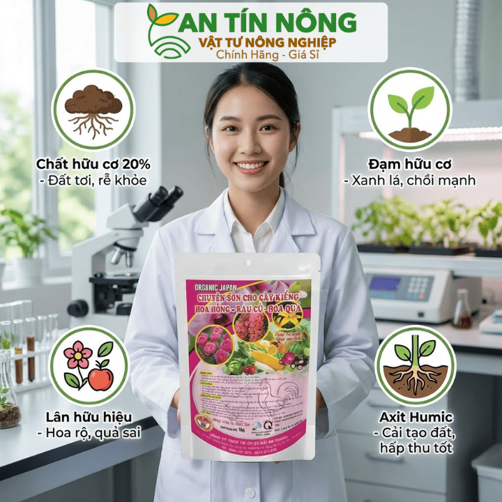 Hoa kiểng (Hoa hồng, mai vàng, bonsai): Trộn vào giá thể hoặc bón định kỳ mỗi tháng một lần để cây xanh lá, đậm hoa.
