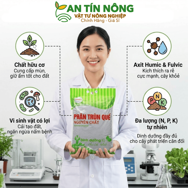 Phân Trùn Quế Lavamix hữu cơ giúp cải tạo đất bạc màu, kích rễ cực mạnh và tăng năng suất cây trồng. Mua ngay tại An Tín Nông để được tư vấn kỹ thuật!
